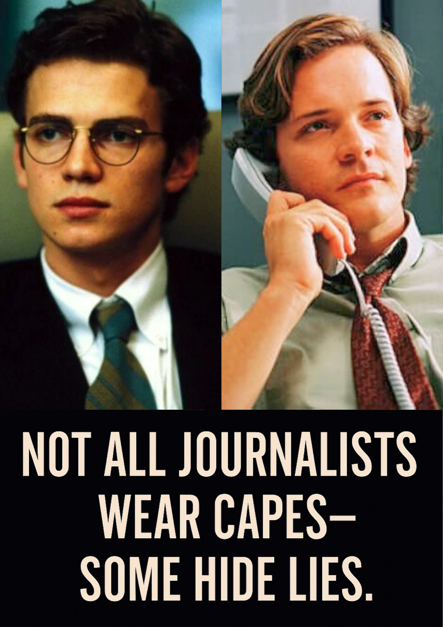 · Title: "Not all journalists wear capes—some hide lies."